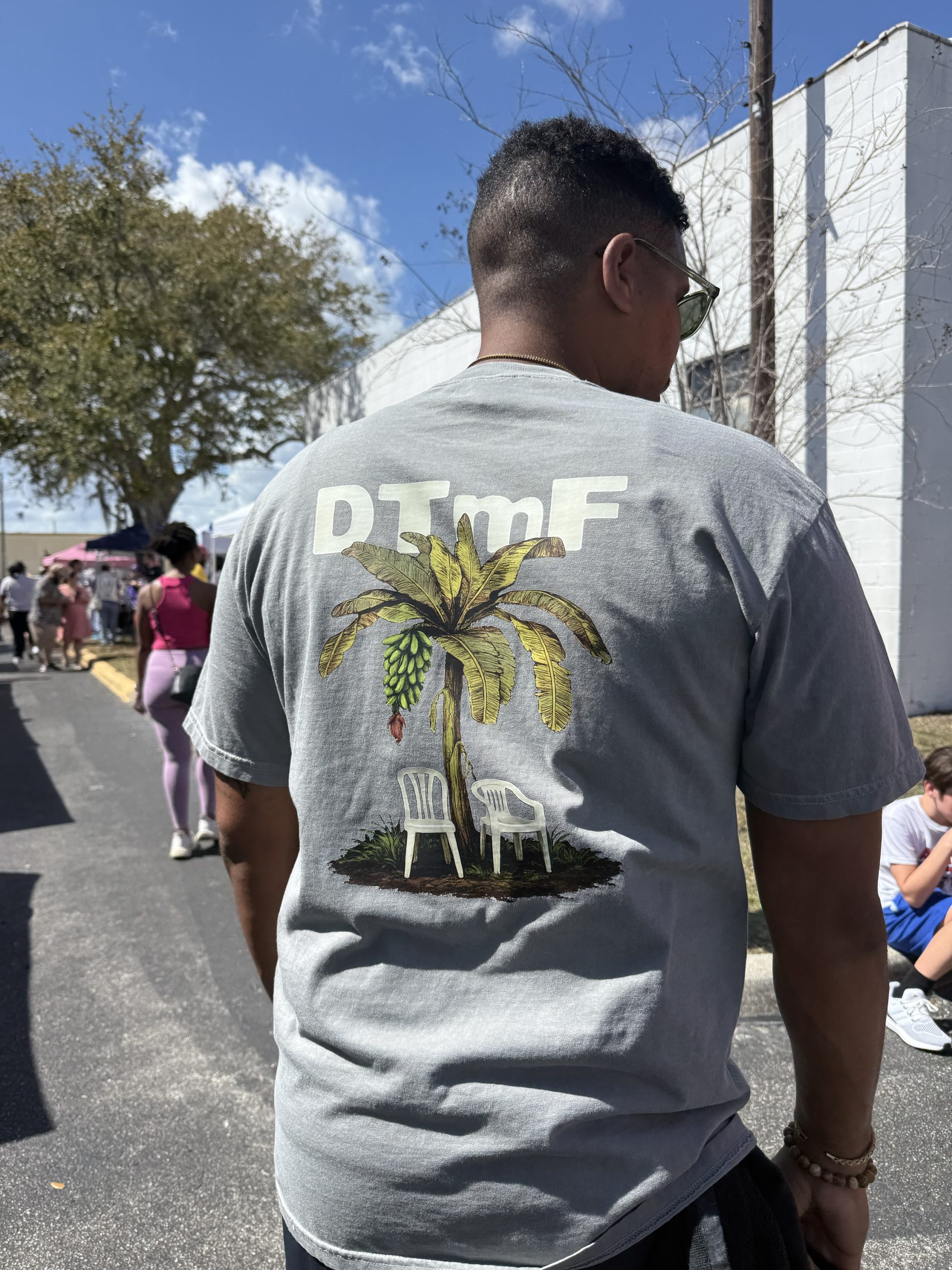 DTmf Design is inspired by Bad Bunny Debi Tirar Más Fotos album. The design features the platano tree typical in Puerto Rico and the iconic chairs you can find in latin countries around the world.